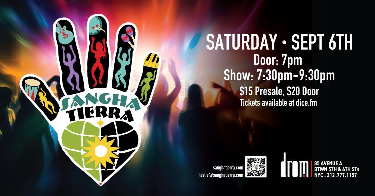 Sangha Tierra is an 11 piece band that performs socially and spiritually conscious world music. Sangha Tierra, based in the New York City/New Jersey area, mixes world & Latin music influences. "Sangha" in Sanskrit means a community that is spiritually connected and "Tierra" in Spanish means earth. Our goal is to create a world community that is spiritually connected through our music. To accomplish this, we play a fusion of world genres that express our positive message of love and unity in several languages, including English, Spanish, & Portuguese.